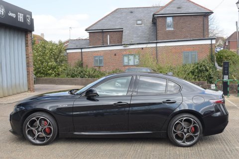 - DescriptionUnleash Italian Elegance: 2024 Alfa Romeo Giulia Veloce – Nero Vulcano Black . Experience the fusion of cutting-edge performance and timeless design in the 2024 Alfa Romeo Giulia Veloce, finished in a head-turning Nero Vulcano Black. Crafted with the soul of a sports car and the sophistication of Italian engineering, this luxury sports saloon is built for those who demand passion in every drive. Under the bonnet, a potent 2.0L turbocharged engine delivers 280 horsepower, paired with an 8-speed automatic transmission — making every twist and turn an invitation. The Giulia Veloce balances razor-sharp handling with refined comfort, creating a driving experience that's as thrilling as it is smooth. Step inside to a driver-focused cabin wrapped in premium materials, with heated leather sport seats, aluminum accents. Stay connected and in control with a responsive 8.8" infotainment touchscreen, Apple CarPlay, Android Auto, and a premium audio system. Safety meets style with a suite of driver-assist features, including forward collision warning, adaptive cruise control, lane departure warning, and blind spot monitoring—so you can drive with confidence and control. Whether cruising the city or conquering winding backroads, the 2024 Giulia Veloce in Black is not just a car—it’s a lifestyle.